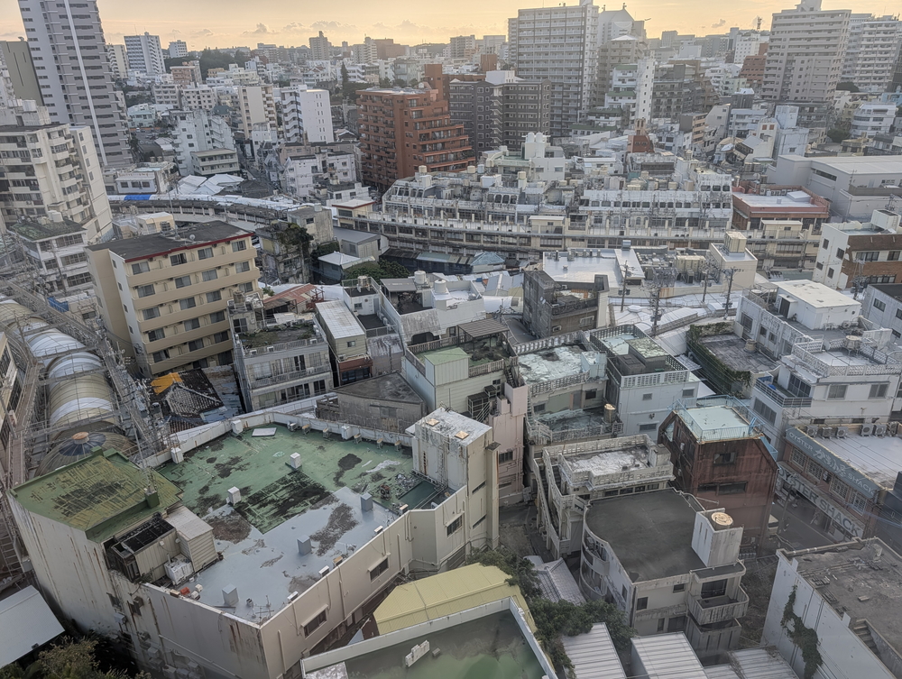 窓から綺麗なビーチを眺めるのもステキだけれど、大蛇のごとくうねる古い商店街を上から覗くことができるのも面白いのよね。