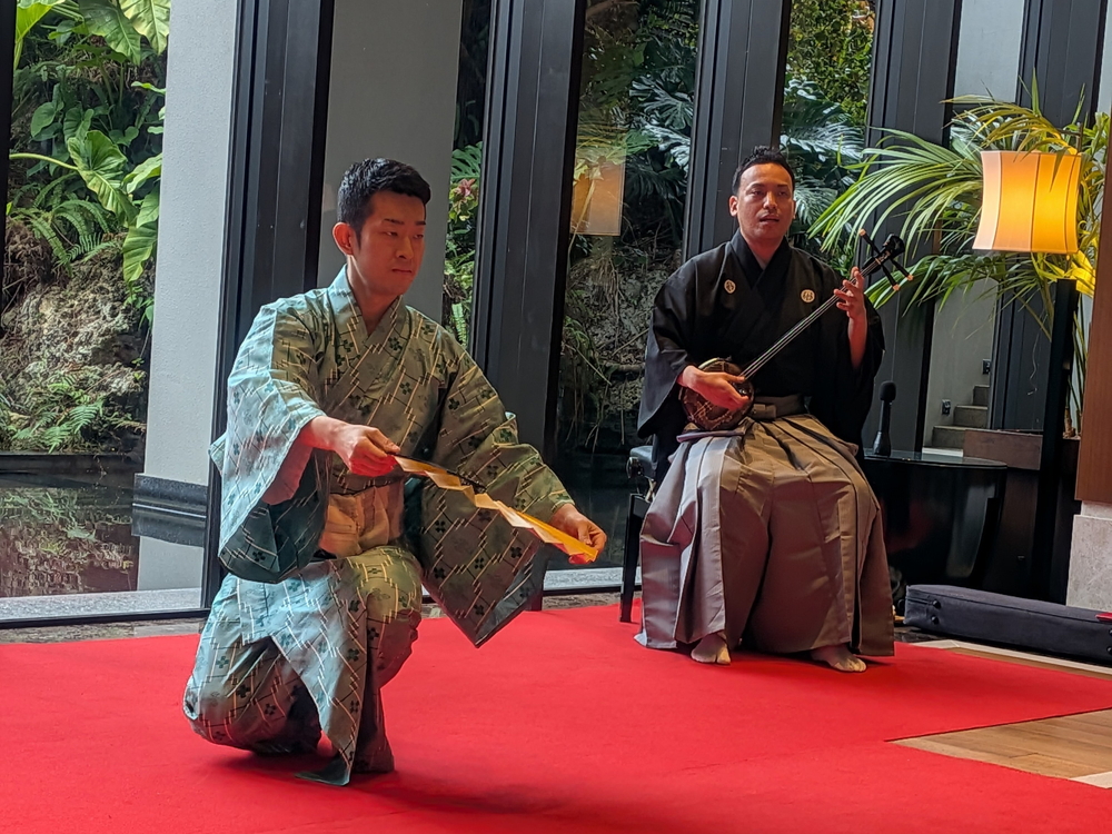 一方、ハイアットのロビーではおめでたき謡と舞踏の披露があって、外国人らに混じってしっかり見物させていただきました。