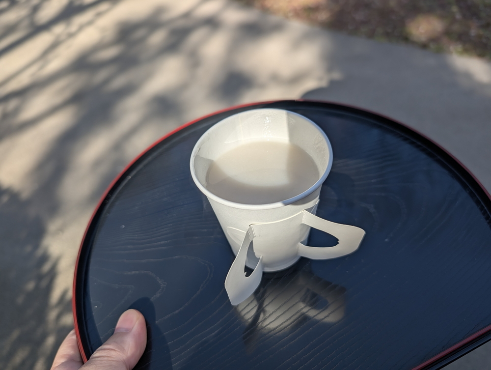 お庭で甘酒なぞをすすり