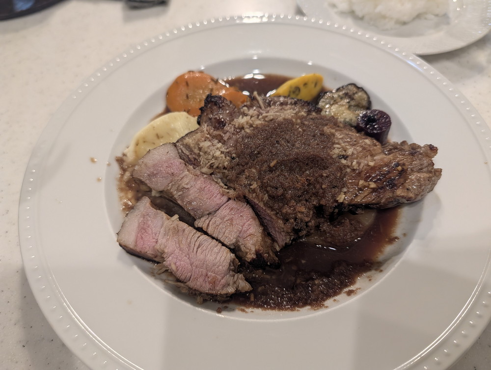 生姜醤油のソースは若干水っぽくなっちゃってましたが、じっくり火を入れた焼き上がりはバッチリで食べごたえがありましたよ。