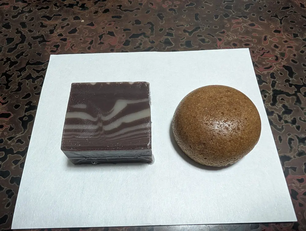 木目模様が面白い木目羹は、小豆と手亡豆に小麦粉も入る蒸し羊羹。