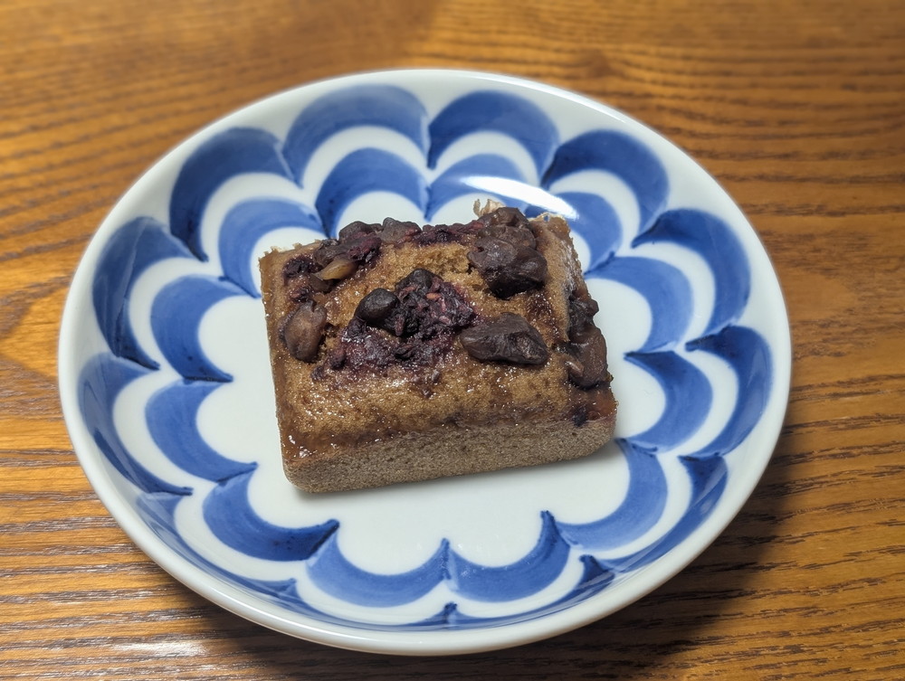 洋菓子枠ですが、これにも山芋が使われているのか。黒糖蒸しパンにくるみと木苺が乗っかっております。