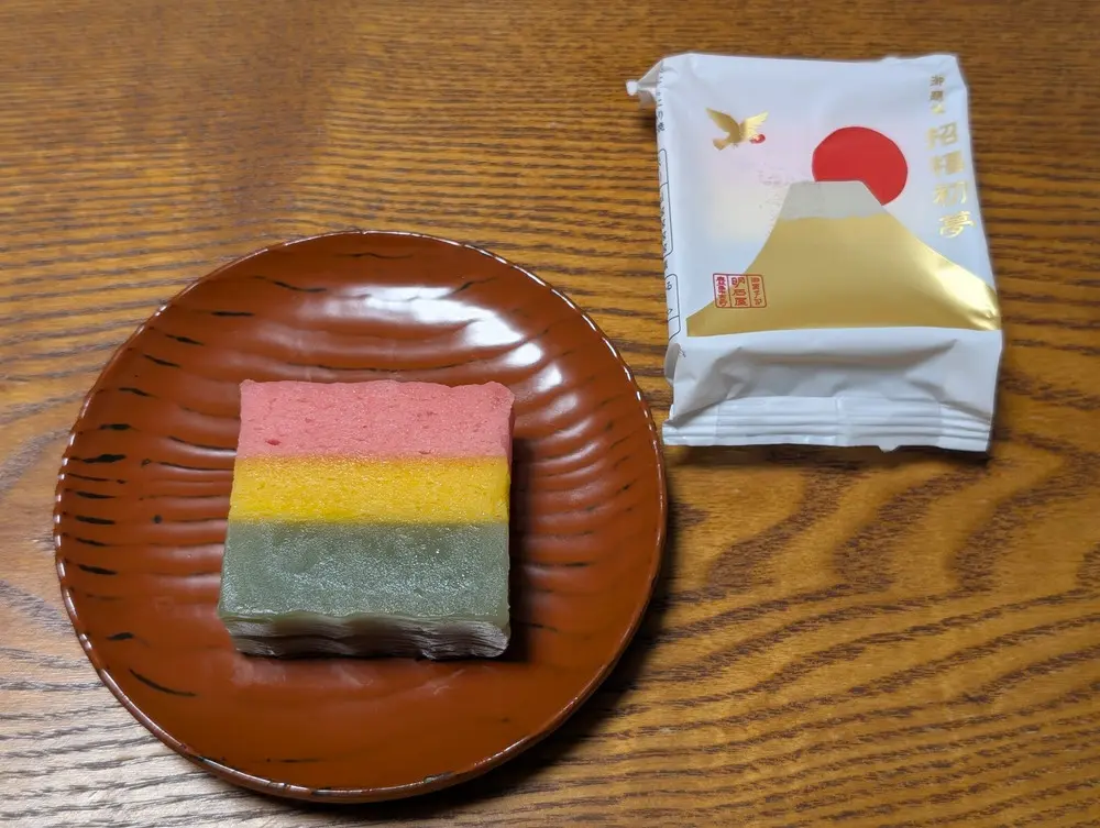 華やかな三段仕立て。生地は軽羹ではなく、カステラに近いような気がするけど、コメ粉も入りしっとり。玉子の香りや羊羹もなめらかに下支えして、いやぁやっぱりおいしいです。