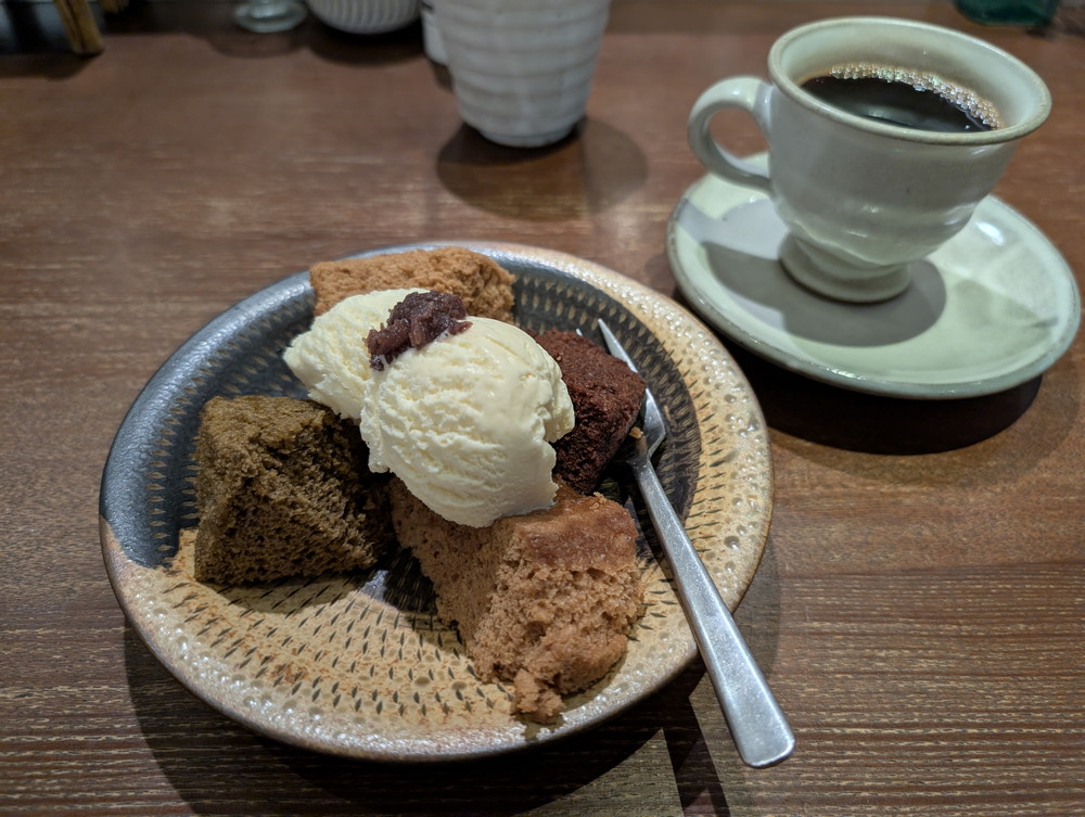 ふくれアイスセットは、上で様々販売されている、ふくれがし4種類(プレーン、黒糖、ココア、抹茶?)にバニラアイス、仕上げにあんこをちょこんと乗せたシンプルなデザートです。