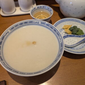 冷茶に浮かべた杏仁豆腐なんて、初めていただくな。