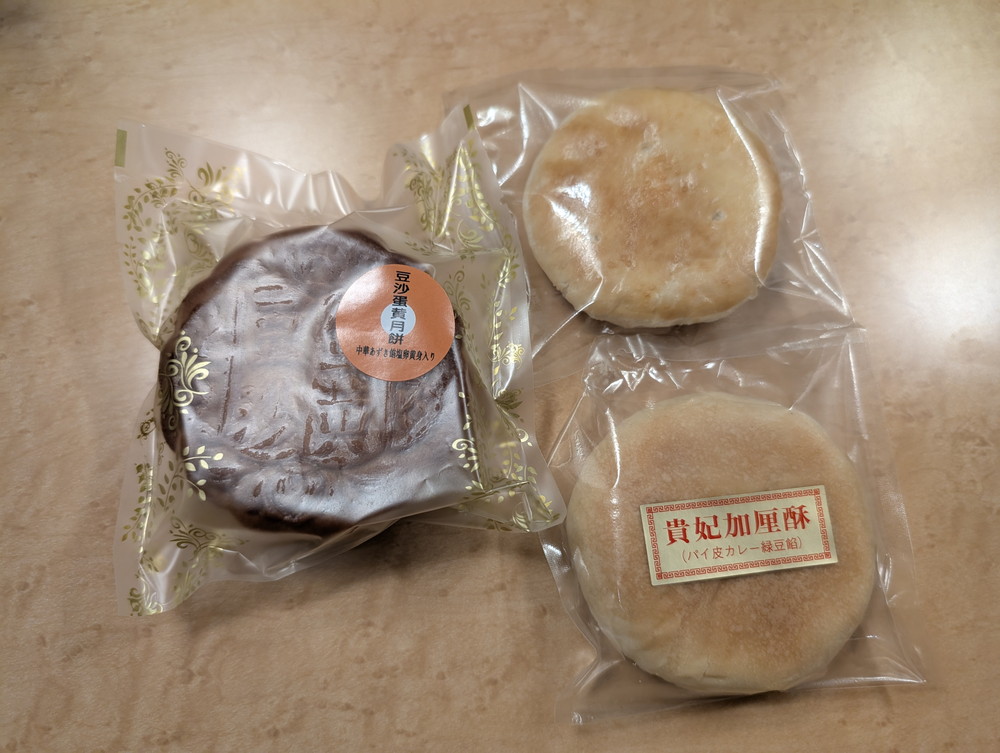 豆沙蛋黄月餅、太陽餅、貴妃加厘酥。