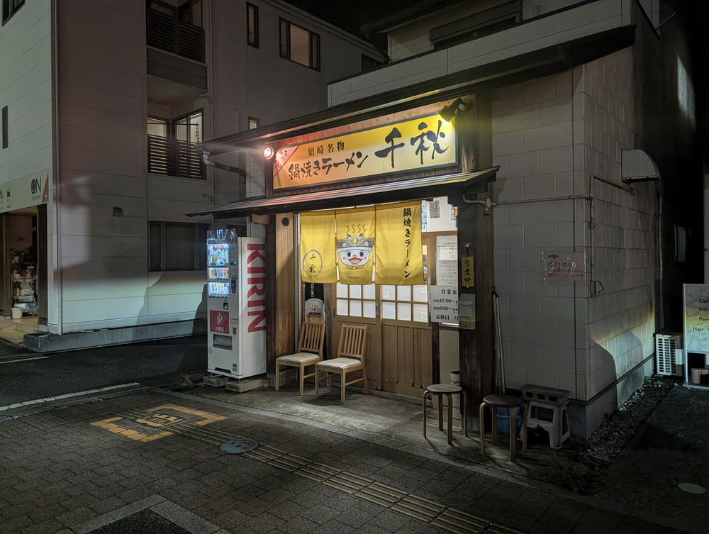 高知市街で鍋焼きラーメンをやっつけるなら、「千秋」はオススメできますよ。