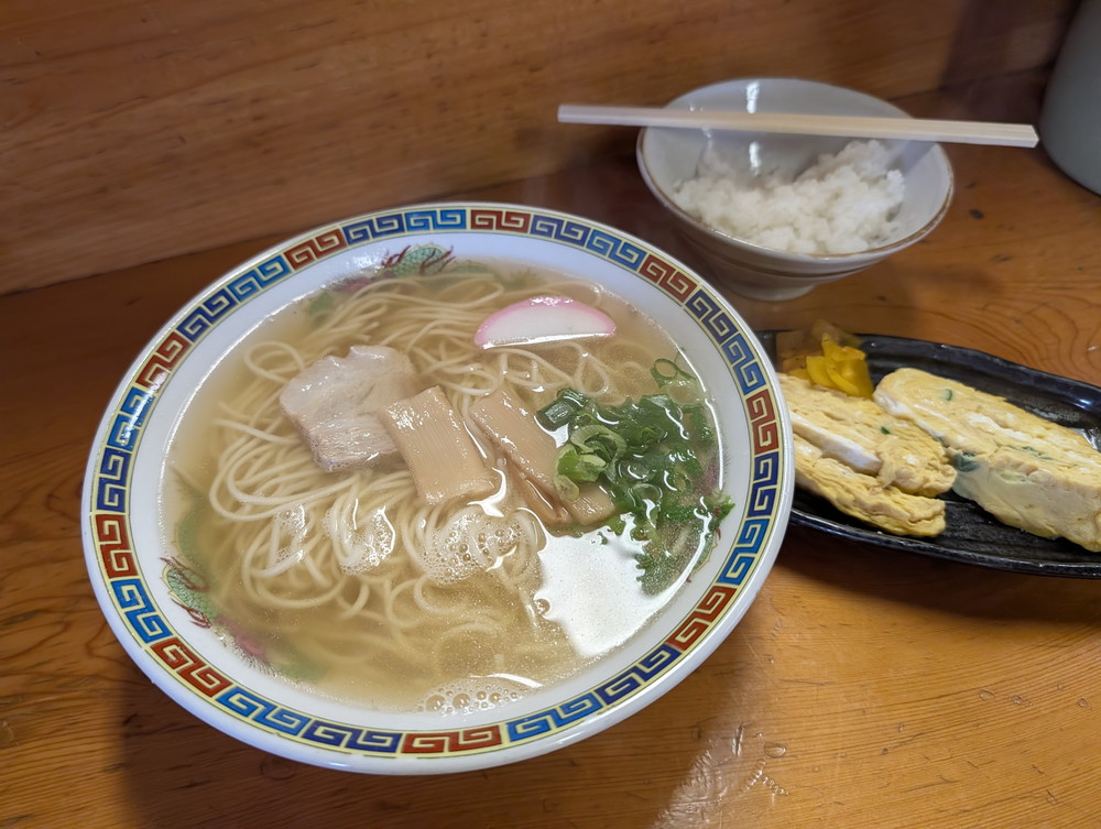 定番たるラーメンセットが、中華そば + ライス + 玉子焼の組み合わせである奇異に!