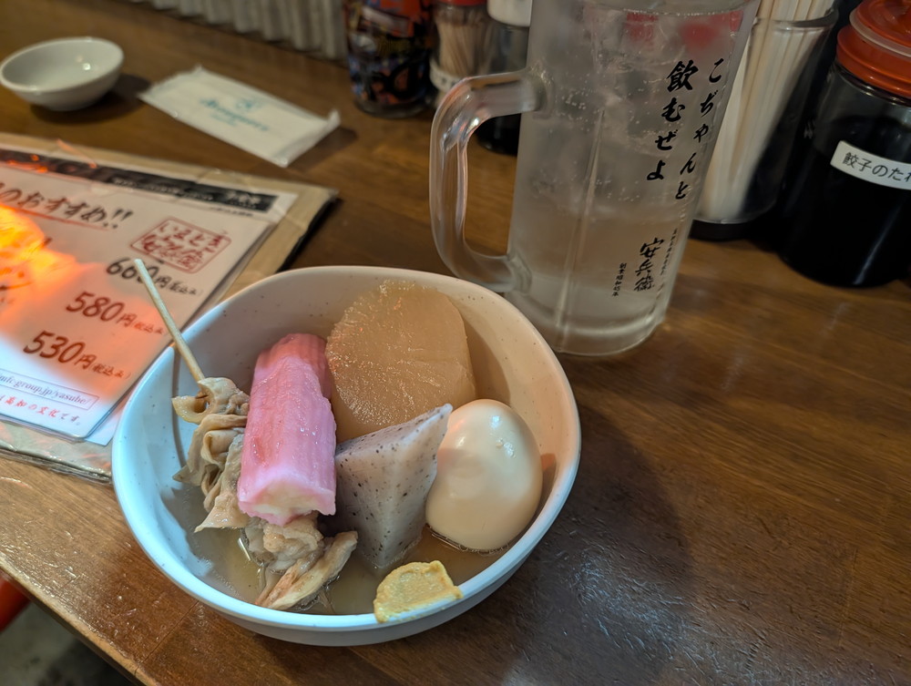 おでんはこれでもかってくらいの牛すじ出汁を大根がぽってり吸っておりましたよ。