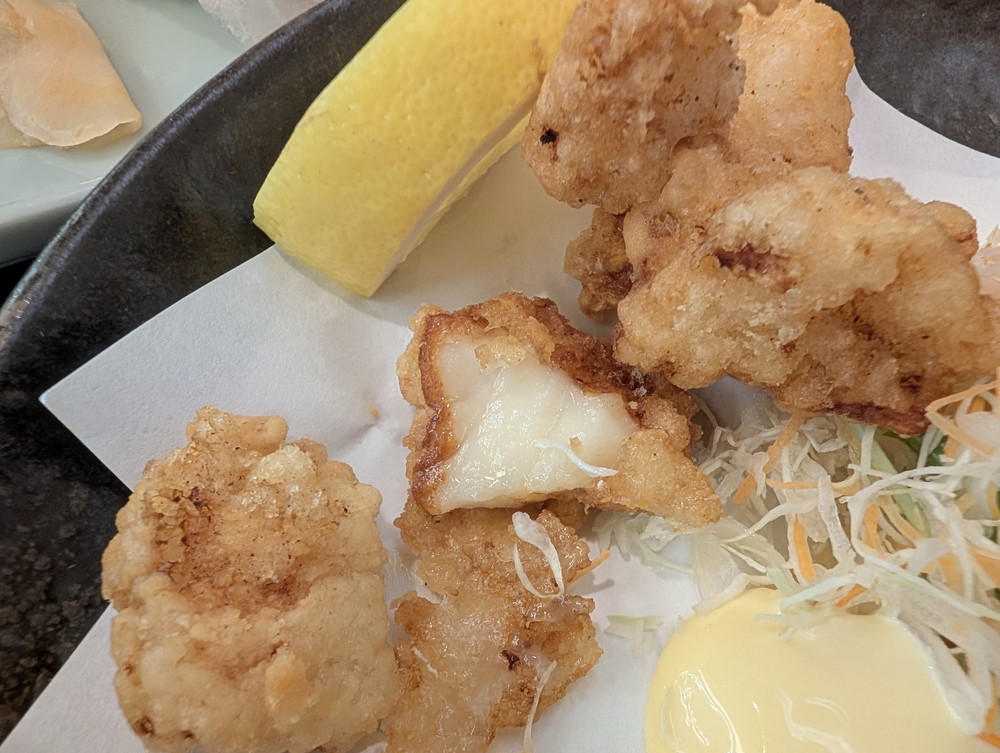 身は淡白なお味で、じゅわっと水っけ。強いて挙げれば、アンコウの唐揚げに近いかもしれません。