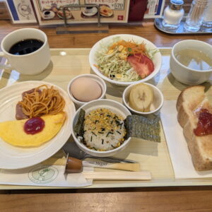 中心繁華街らしい、比較的小綺麗に整った朝食です。
