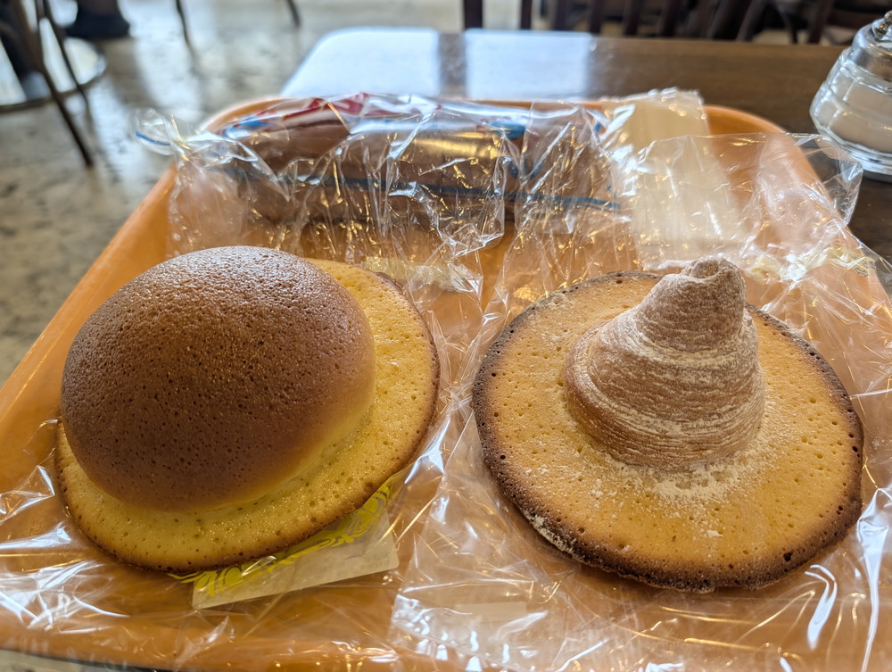 なんでも、メロンパンを作る際のミスで偶然生まれた経緯らしいのですが、その後、丸パンの上からカステラ生地をかけて焼き上げる式に調整され、今日では県下の様々なお店で製造されております。