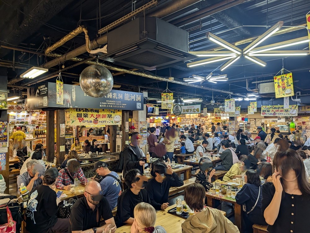 お城に近い好立地なので、ツアー客らも順次立ち寄る様子。雰囲気はたいへん楽しく、外国人観光客も大喜びで飲み食いしております。