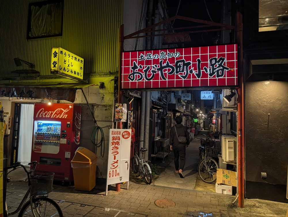ちなみに周辺の「大橋通り商店街」は、かつて高知市民の台所といわれた生鮮取り扱いの場で、「ひろめ市場」も公設市場のような雰囲気の施設になっているんだけど、シラフで眺めてみると観光相応で、それほど旨そうなもんが出ているわけでもないんだよな。