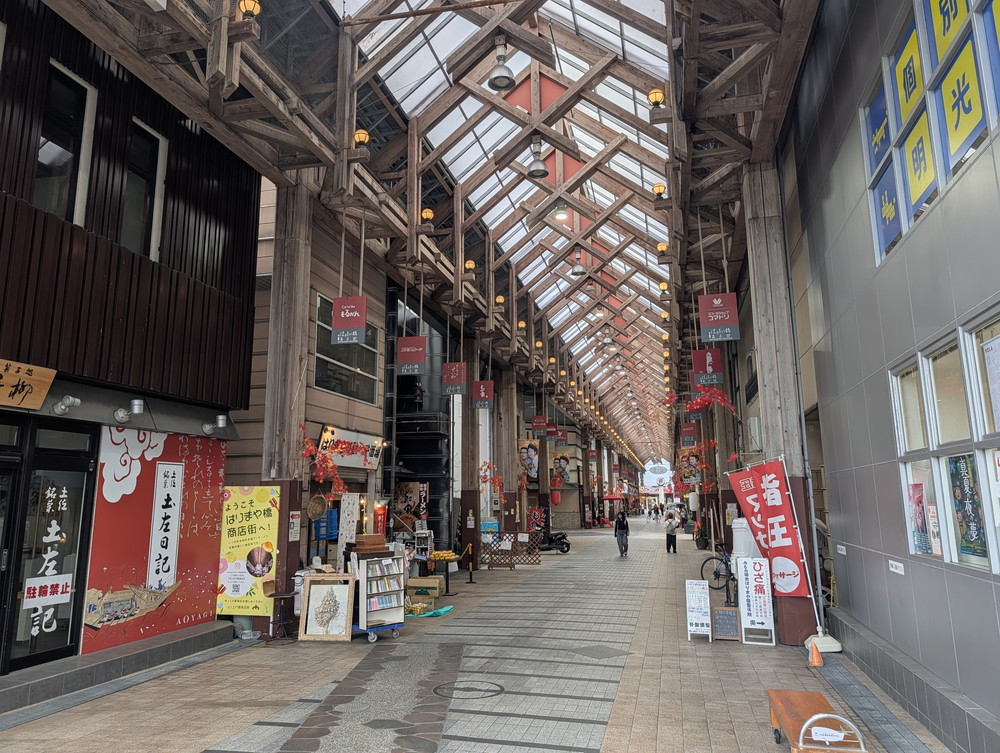 かつては高知で最も栄えた商店街といわれ、やはり1998年に地元の木材を使った美しい木造アーケードを設置したなかなか雰囲気のある環境なのにな。