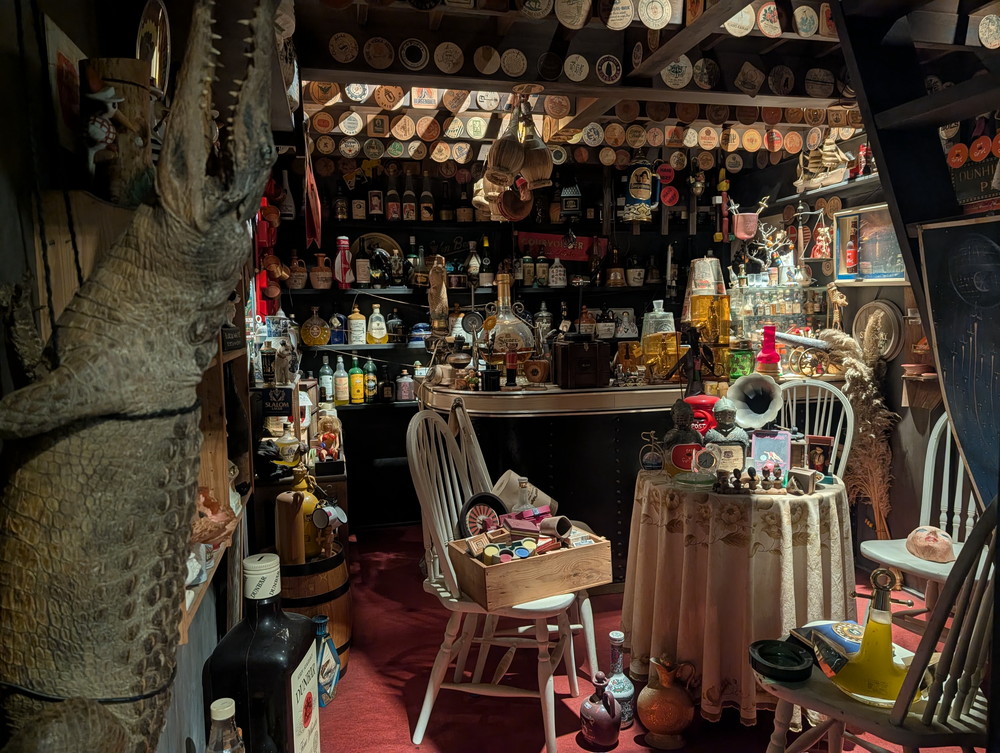 味のある古い風刺漫画や、氏の作品、絵画なども大変興味深いのですが、鎌倉市役所の向かいにあった自宅から、アトリエや飲み部屋など様々なものが移設されており、それがまた楽しいのよ。