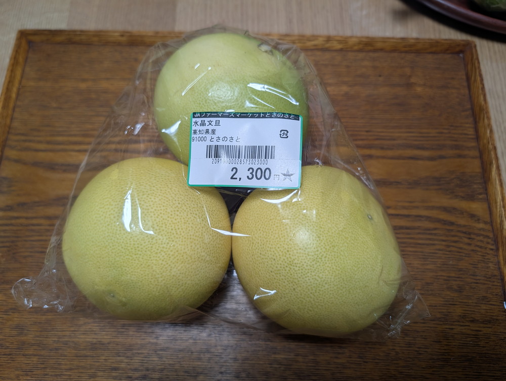 水晶文旦一つで、早生の山北みかんが2~3袋買えるとしたら、どちらをとるべきか・・・