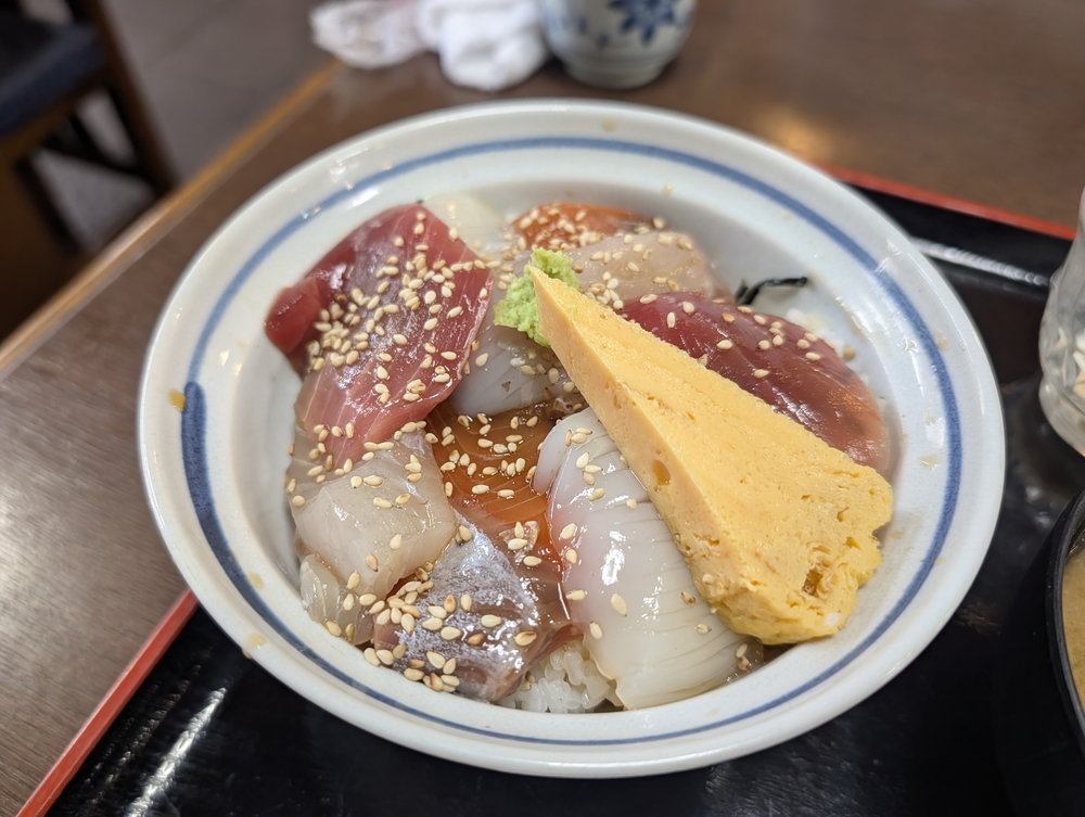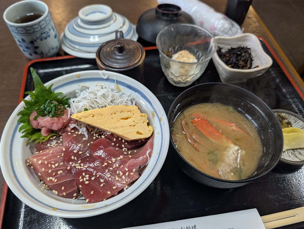 やはり、平素は繁く集客している風ではなく、地魚料理をいろいろつまめるというよりは、名物のまぐろを中心とした丼にフォーカスした昼営業になっているようです。まぐろづくしの定食も売り切れだったし、エンジンかかってない感じ。