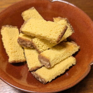 カステラと違ってホロホロ崩れるようなどっしり焼きなんだけど、油重たくないし、皮も入ったレモンの香りがとってもいいのです。