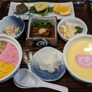 ヒラメの刺身もおいしいし、煮物にはクジラの切畝が見えるし、魚入りの酢の物、味噌汁含め、どれもほんのり甘いのが長崎のお味だよな。