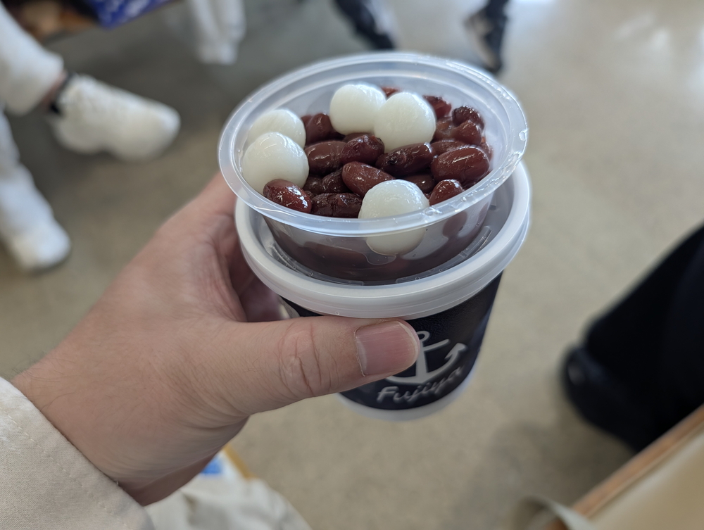 ここではブルーシールアイスだけでなく、「富士家」のぜんざいを販売しているのよ。