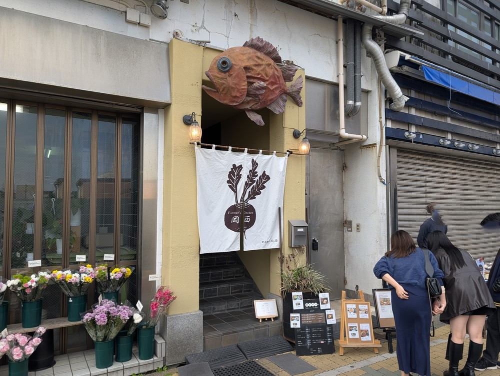デッカイ魚のオブジェに蕪の暖簾という、甘味屋らしからぬ入口なのよね。