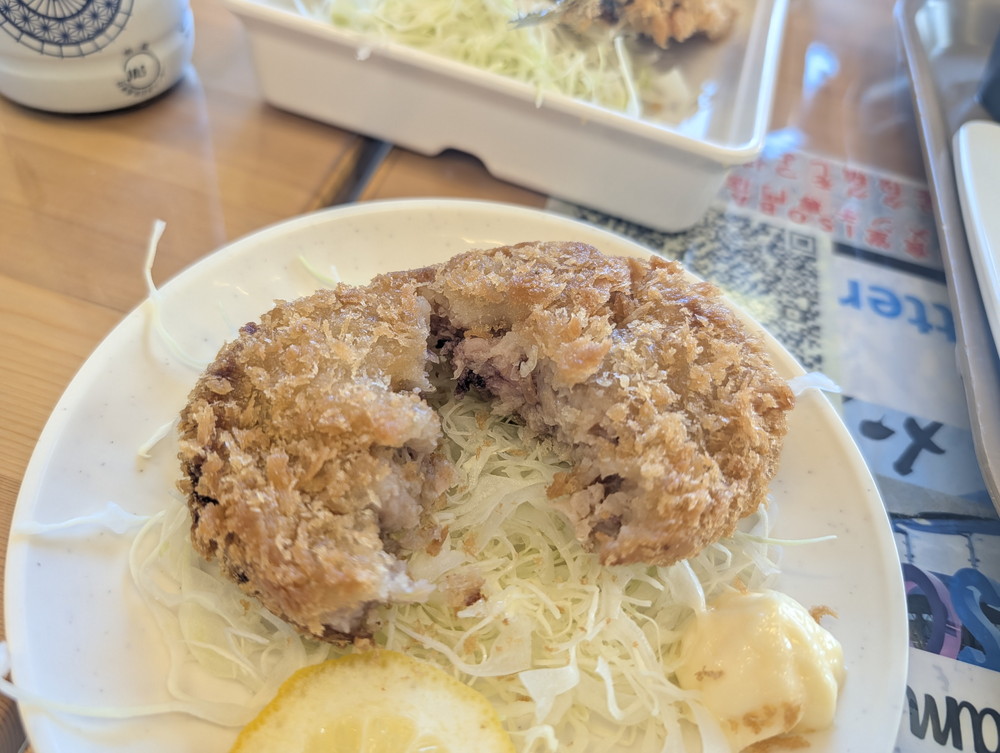 ご当地名物のイカメンチは、挽肉代わりに叩いたイカを使うメンチカツ。