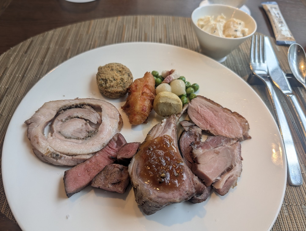 名物は牛、豚、羊、鴨など、様々なお肉が並んでいるローストコーナー。