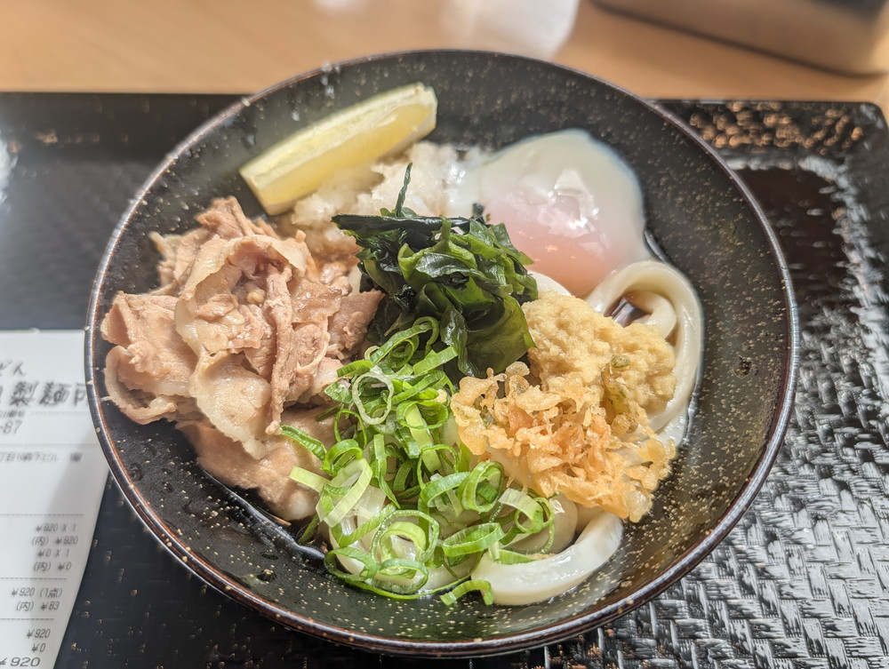 店頭の看板に肉うどんが推されていたので、冷ぶっかけで注文してみました。